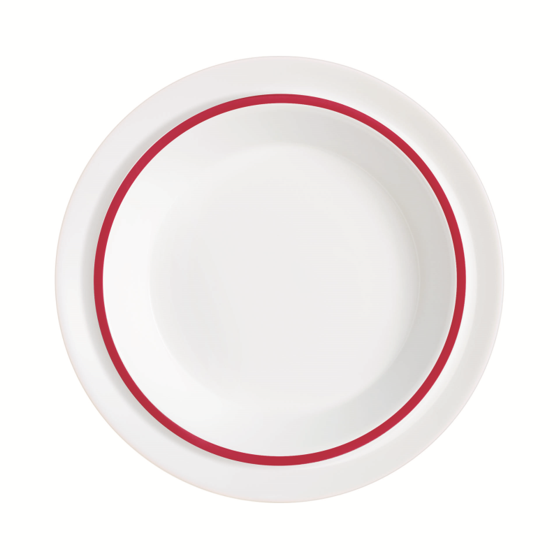 The Autonomy concept has been designed to make mealtimes easier for people losing their independence. Developed in collaboration with healthcare professionals, this collection is both technical and functional. The range consists of 2 plates, 230 mm and 190 mm in diameter, available in versions with a blue or red fillet, and a 30 cl tumbler to meet the different needs of care home residents. The main features of the plate design are a deep well to prevent food from spilling off the plate, a ridge to prevent the thumb from touching the food and to make it easier to hold, optimised depth to prevent residents from having to lift their cutlery and therefore their arms too high, and a coloured fillet to make the food easier to see. The ergonomic design of the tumbler is just as functional, with a tall shape for drinking through a straw and a wide rim to prevent problems with swallowing. With the Autonomy collection, meals will be more enjoyable for residents who are losing their independence.