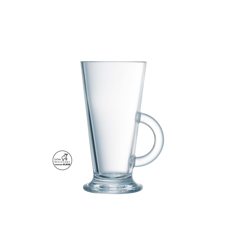 Our Latino glass is the iconic Latte glass, perfect controlled capacity serve for coffee, hot drinks, Irish coffee and mulled wine. The large handle and foot make it a joy to use. Made from Fully Tempered / Toughened glass it is designed to withstand the daily rigours of a professional business, with enhanced thermal and mechanical shock properties each glass has a longer and life., thus saving you money throughout the year.